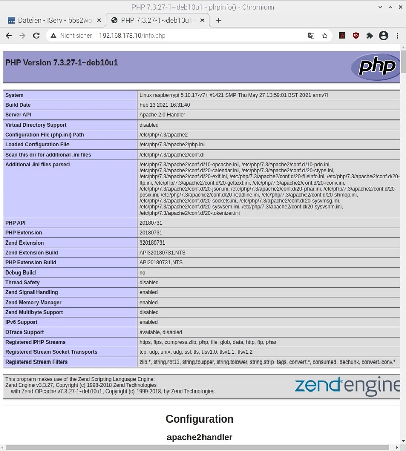 Abbildung: PHP Info Page, Quelle BBS2 Wolfsburg