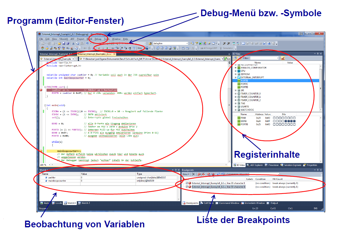 Abb.:AtmelStudio - Debugging; Quelle: BBS2 Wolfsburg