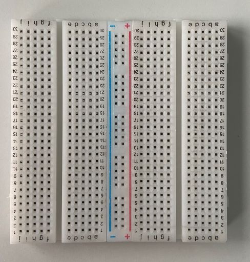Begonnen wird mit dem Zusammensetzen des Breadboards. Hierfür werden 2 Breadboards benötigt, an denen wie folgt die Spannungsschienen abgebaut werden müssen: