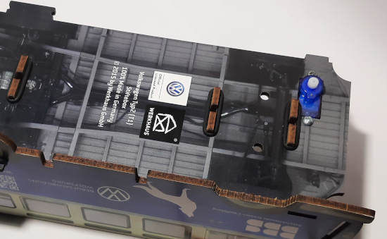 Beim Aufsetzen des weißen Servoarmes (Abbildung 2) beachtet, dass die Lenkung bis zum Anschlag nach rechts und links funktioniert
