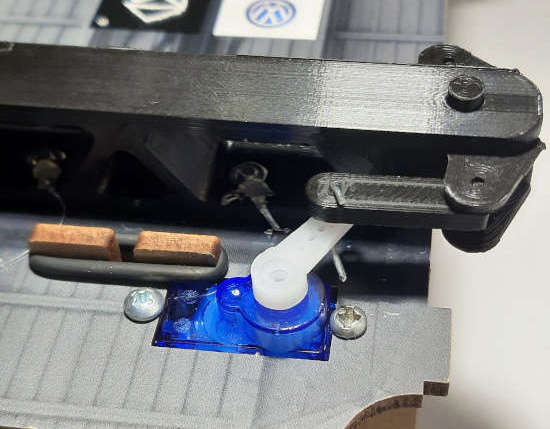 Der Servo wird mit zwei M3 x 8 Schrauben festgeschraubt. Die Richtung des Servos ist in Abbildung 2 zu erkennen.