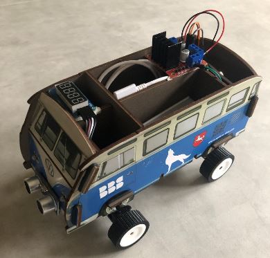 Wir benutzen die bereits eingebauten Sensoren, nämlich den Ultraschallsensor HC- SR04, sowie andere Komponenten wie z.B. den passiven Summer, den DC-Motor und den dazugehörigen Motortreiber um mittels PWM seine Geschwindigkeit anzusteuern. Vor allem kommt noch das 7- Segment Display hinzu.