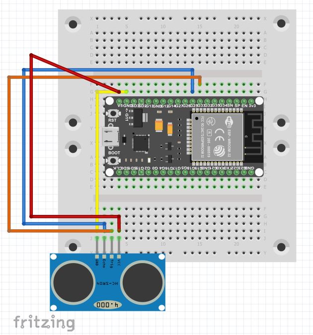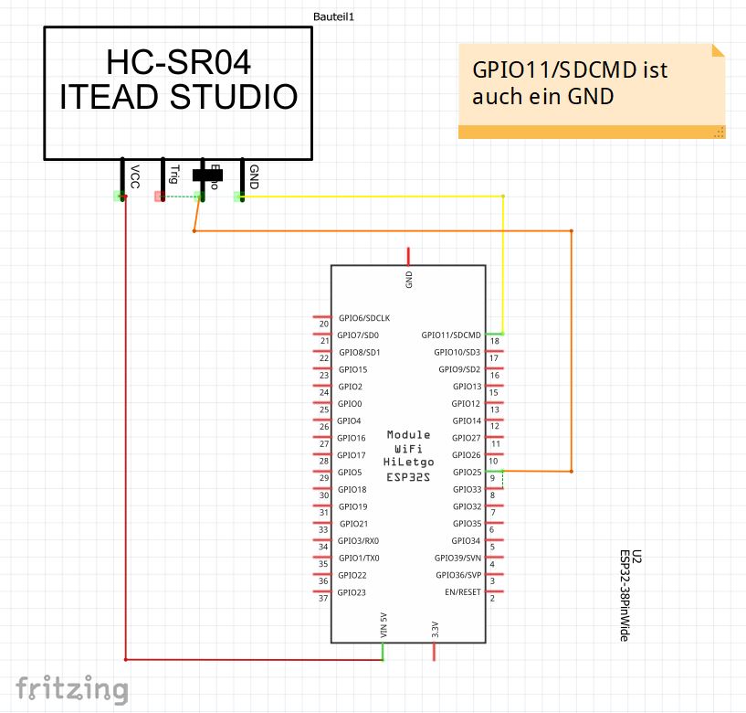 Die Folgenden Abbildungen zeigen wie der Ultraschallsensor an den Microcontroller (ESP32) angeschlossen wird.
