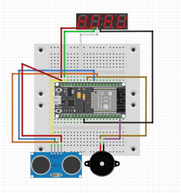 Abbildung: Fritzing-Schaltplan Ultraschallsensor mit 7-Segemnt Display und passivem Summer