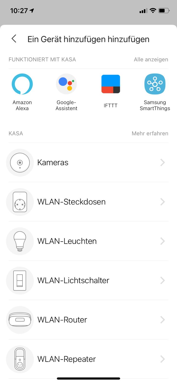 Hier werden euch nun mehrere mögliche Geräte vorgeschlagen, die TP-Link anbietet. Da wir nur die Steckdose haben, können wir auch nur diese einrichten. Falls ihr mehr Interesse am Thema SmartHome habt, könnt ihr ja privat mehr davon kaufen und installieren, es gibt eine Vielfalt an Möglichkeiten, euer Zuhause „Smart“ zu machen, wie ihr seht. |