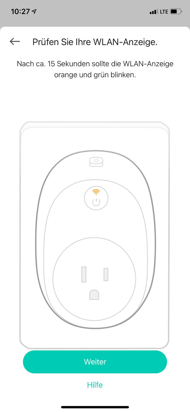 Jetzt könnt ihr die Steckdose in die gewünschte Steckdose einsetzen. Ist die Steckdose noch nie zuvor verwendet worden, sollte sie nach kurzer Zeit orange und grün blinken. Wurde sie bereits einmal benutzt, müsst ihr die Steckdose resetten. Dazu drückt ihr lange auf den oberen Knopf der Steckdose, bis die Lampe an der Dose sich verändert. Nun sollte die Lampe nach kurzer Zeit grün und orange blinken. |