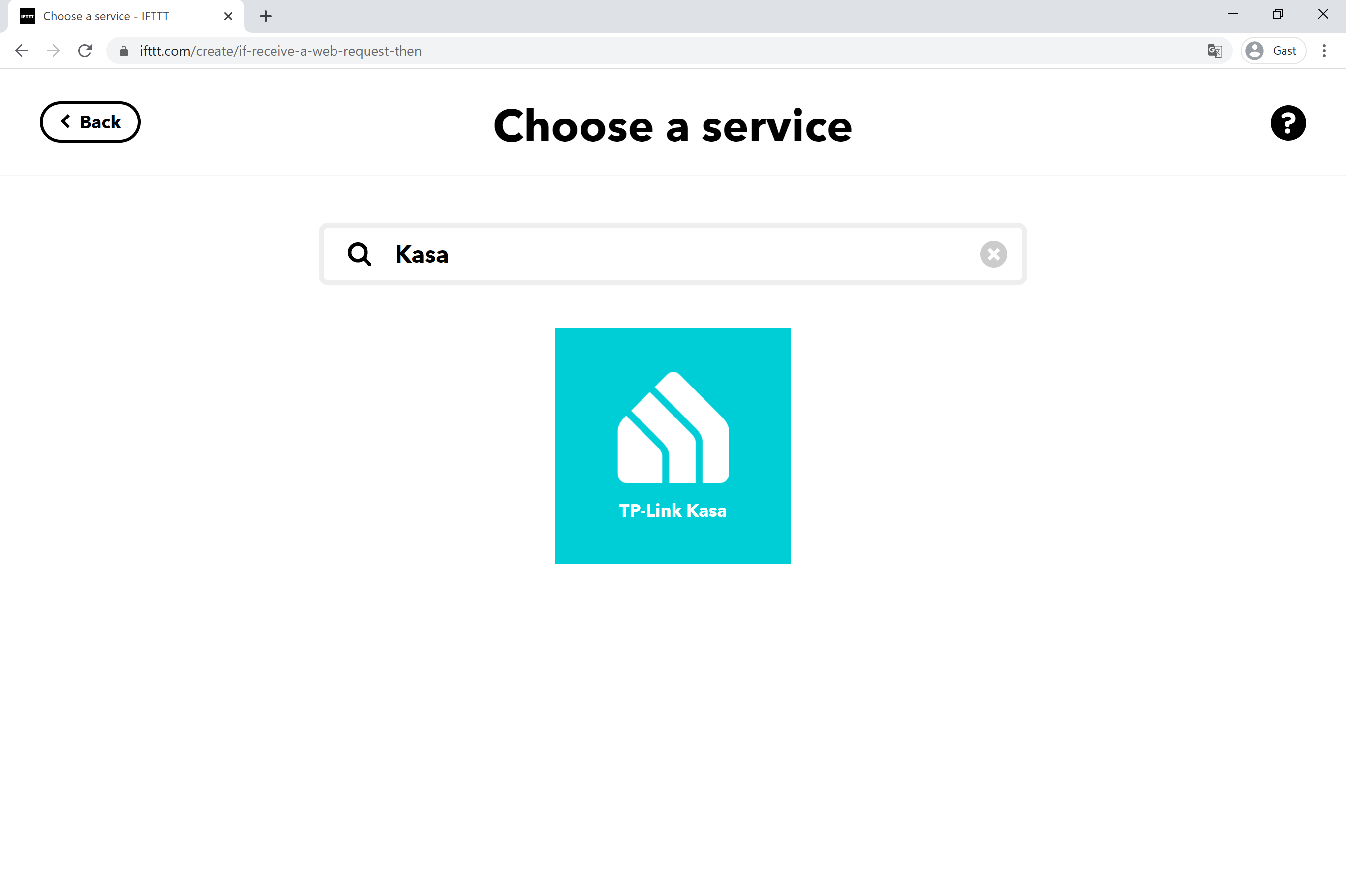1. Nun wollen wir die Folge unserer Verknüpfung bestimmen, sodass IFTTT die Steckdose auch ansprechen kann. Dafür gibt es für die Steckdosen von TP-Link integriert die Funktion "KASA". Damit wird es möglich, die Steckdose direkt anzusprechen. Ihr gebt dafür in das Suchfeld "Kasa" ein und wählt es aus.