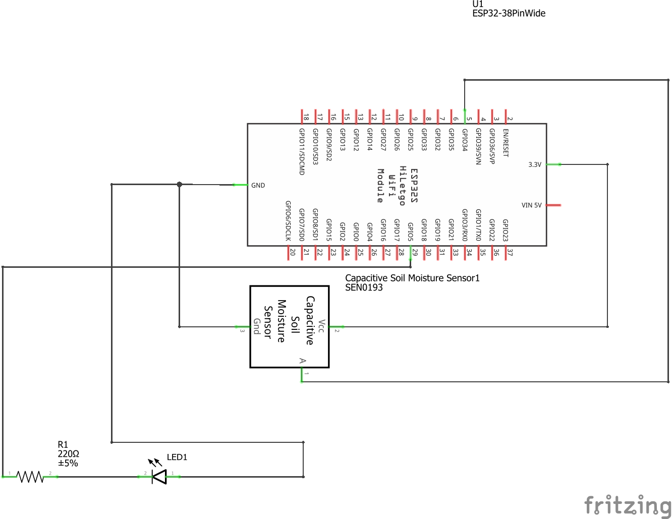 Abbildung: Schaltplan (Erweiterungen: 220Ω Widerstand, LED)