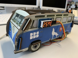 Die Klimaüberwachung wird mithilfe eines ESP32 Mikrocontrollers (Steuerung), einem DHT11 Sensor (Temperatur- und Luftfeuchtigkeitsüberwachung) und einem TM1637 Anzeigeelement (Ausgabe/Visualisierung) realisiert. Diese Komponenten sollen auf einem Breadboard miteinander verdrahtet werden. Hierfür wird ein entsprechender Schaltplan zur Verfügung gestellt. Die Programmierung der Steuerung kann mittels der Software Arduino-IDE durchgeführt werden. Auch hier wird ein fertiges Steuerungsprogramm zur Verfügung gestellt, welches lediglich in den ESP32 entsprechend der Anleitung hineingeladen werden muss. Das fertig verdrahtete Breadboard wird auf der Unterseite des T1-Modells angebracht und die Leitungen sind durch die vorhandene Bohrung im Boden des T1 zu führen. Das TM1637 Anzeigeelement wird an der Außenseite des T1 fixiert, so dass dieses gut sichtbar ist.