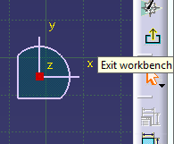 Wenn du mit dem Skizzieren deiner Fläche fertig bist, musst du diese erst schließen, damit sie erstellt wird und weiterverwendet werden kann. Dies kannst du mithilfe der Funktion "Exit workbench" in der rechten Toolbar umsetzen.