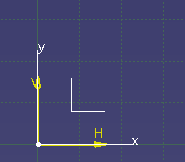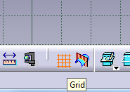 Nachdem du das getan hast, sollte sich das Programm automatisch in die von dir ausgewählte Ansicht drehen und dir das gelbe Basiskoordinatensystem dieser Ebene anzeigen. Zu diesem musst du später deine konstruierten Skizzen bemaßen, um einen Bezug zum globalen Koordinatensystem herzustellen. In dieser Ansicht wird dir darüber hinaus ein Hilfsgitter zur Orientierung angezeigt. Dieses kannst du über die Funktion "Grid" in der unteren Toolbar ein- bzw. ausblenden.