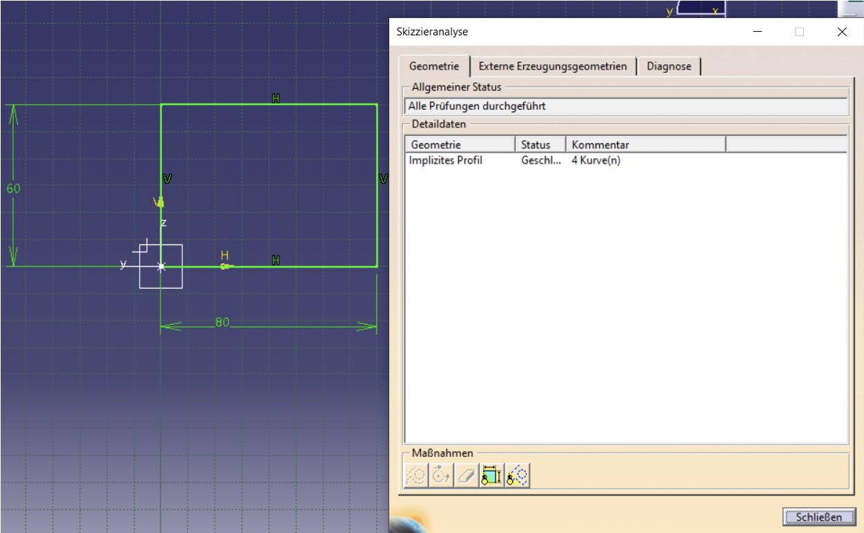 2. Wenn die Skizze unvollständig bemaßt und referenziert ist, werden dir die fehlerhaften Seiten weiß angezeigt.