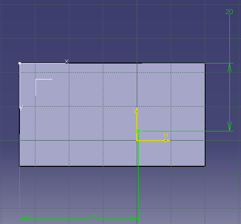 Es öffnet sich die Skizzierebene, in der der Mittelpunkt der Bohrung als kleines Kreuz eingezeichnet ist. Dieser kann nun mit Hilfe des bereits bekannten Befehls "Constraint" zu den Koordinatenachsen bemaßt werden.