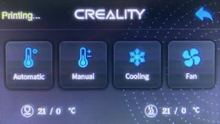Für die manuelle Einstellung der Temperatur "Manual" können in diesem Menü die Werte für die Düse und das Druckbett eingestellt werden. In den meisten Fällen wird es jedoch ausreichen, die automatische Temperatureinstellung zu verwenden.