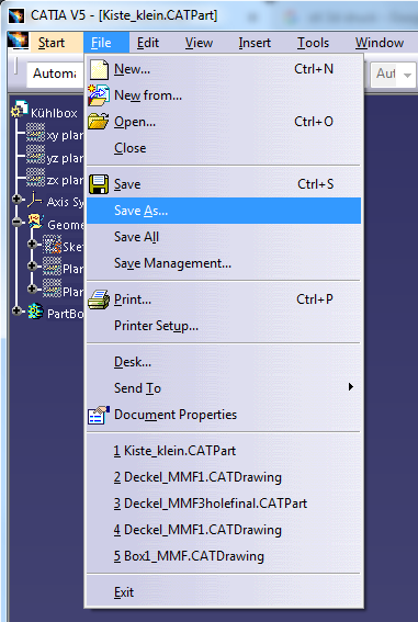2. Nun gehst du mit der Maus im oberen Hauptmenü auf den Punkt "File", so dass sich anschließend das Auswahlmenü aufklappt. In diesem Menü klickst du dann auf die Option "Save As...".
