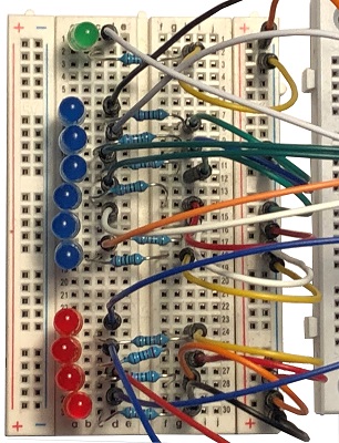 ![]() Abbildung 2: Ordnung der LEDs am Breadboard Quelle: BBS 2 Wolfsburg |