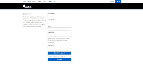 Abbildung 2: Registerung bei Adafruit IO Quelle:https://io.adafruit.com/