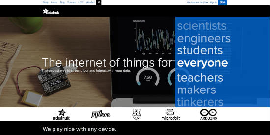 Abbildung 1: Homepage von Adafruit IO Quelle:https://io.adafruit.com/