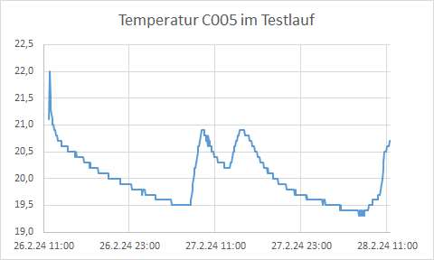 Für unseren Testlauf haben wir uns den Raum C005 ausgesucht. Die Temperatur des Raumes im Grundzustand habt ihr bereits im Abschnitt Einsparpotential gesehen. Unser Testlauf begann direkt nachdem wir die Homematic-IP Geräte installiert haben. Der Raum beinhaltet 6 Heizungen mit Kompakt Smart Thermostat und ein Smart Raum Thermostat. Fensterkontakte haben wir aufgrund der Kosten in unserem Testlauf nicht genutzt. Der Raum hat eine komplette Fensterfront mit großen Fenstern und eine Tür, die häufig während des Unterrichts aufsteht. Dadurch kann viel Wärme nach draußen oder in den Flur entweichen.